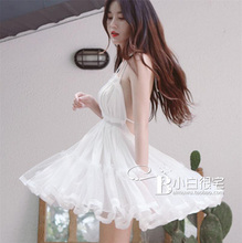 2017夏装新款女装 韩国代购性感大露背女神深V挂脖大摆连衣裙
