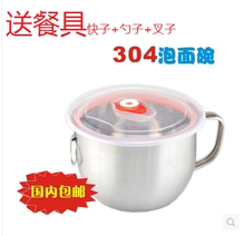 304不锈钢饭盒学生成人便当盒可爱圆形快餐杯带盖泡面碗 泡面杯