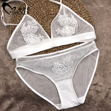 蕾丝网纱内裤刺绣文胸套装 性感深V聚拢内衣套装薄款 少女文胸