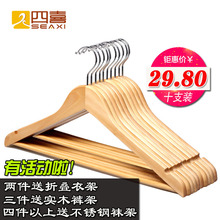 四喜实木衣架木质衣挂防滑衣架原木头衣架子衣柜衣撑晾衣架10支装
