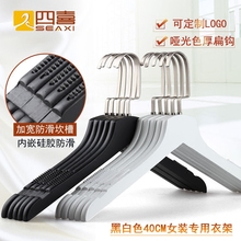 四喜黑白色木衣架服装店酒店衣挂成人防滑木质衣撑扁钩衣架可定制