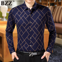 bzz冬季中老年保暖加绒加厚男士衬衫中年休闲宽松格子大码爸爸装