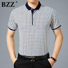 Bzz夏季新款中年条纹T恤男宽松翻领爸爸装 中老年夏装体恤衫父亲