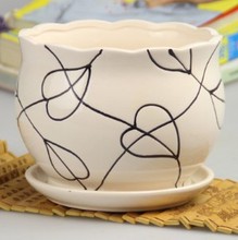 致恒苗圃圆形高档陶瓷花盆 爱心图案简单而不单调带托盘