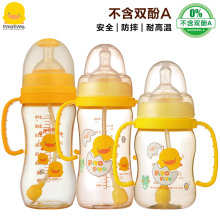正品PIYOPIYO 婴儿宽口径PES握把带吸管奶瓶防摔新生儿宝宝奶瓶