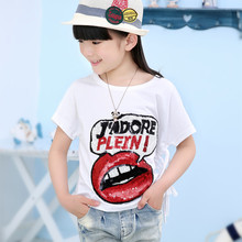 9.9童装2016夏装新款女童韩版短袖T恤 印花中大童休闲打底衫 潮