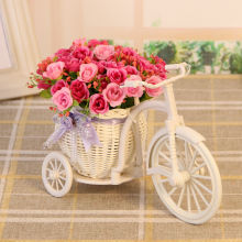 田园家居装饰品客厅摆件整体花卉玫瑰假花藤编花车仿真花花艺套装