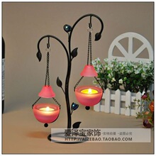 欧式灯笼铁艺烛台 复古风格两头悬挂式烛台 婚庆新房摆件送蜡烛
