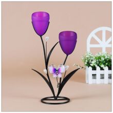 烛光晚餐!欧式铁艺两头烛台蝴蝶田园风格新房浪漫婚庆摆件送蜡烛