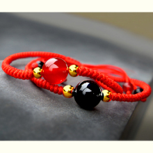 黄金情侣手链真金足金玛瑙转运珠路路通男女本命年红绳编织纯金子