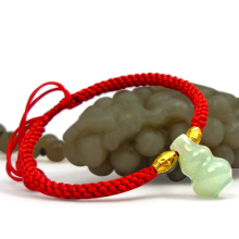 黄金手链玉葫芦真金足金纯金子本命年情侣转运珠路路通男女款红绳