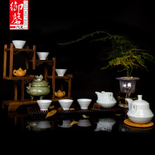 御磬陶瓷景德镇8头手工雕刻功夫茶壶茶具套装影青雕刻边花