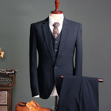 西服套装男士春秋修身三件套新郎婚礼服结婚伴郎西装男职业装正装