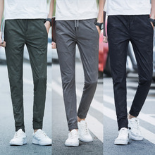 薄款青年运动休闲裤男韩版修身松紧腰长裤男小脚弹力束脚裤男