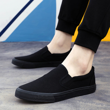 低帮黑色布鞋男士白色百搭休闲鞋防臭一脚蹬夏季潮鞋社会人帆布鞋