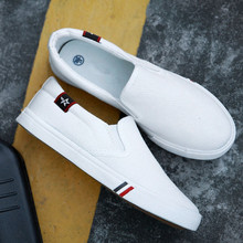 时尚白色布鞋男士夏季轻便帆布鞋男懒人套脚潮鞋韩版休闲青年板鞋