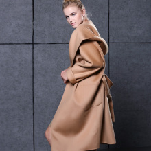 2016秋冬季新款手工连帽系带双面羊绒羊毛大衣女毛呢子外套中长款