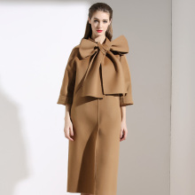2016秋冬高端新款女装镂空花苞外套加长款双面羊绒羊毛呢子大衣女
