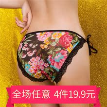 女士性感蕾丝边系带内裤透明网纱诱惑大码女式内衣少女夏三角裤头
