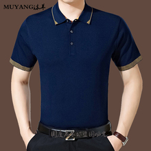 中年男士短袖T恤夏季翻领条纹体恤衫中老年爸爸装宽松大码男t恤衫
