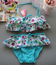 可爱荷叶边小胸比基尼抹胸款泳衣bikini