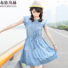 2017夏季新款韩版收腰显瘦少女裙子初中学生夏装无袖牛仔连衣裙
