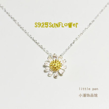 太阳花吊坠925纯银链子小雏菊项链锁骨女短款日韩国简约清新气质
