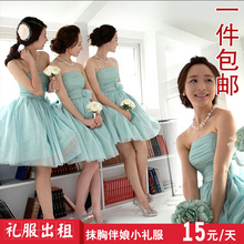 【出租】新款多色新娘结婚敬酒姐妹裙短款抹胸绑带年会伴娘小礼服