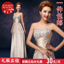【出租】2016新款银色香槟新娘结婚敬酒服宴会抹胸立钻长款晚礼服