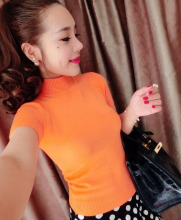 【新款秋装】高领短袖紧身针织衫女套头短袖毛衣打底衫韩版潮包邮