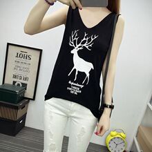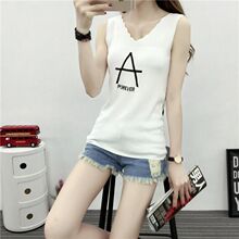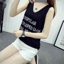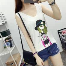 2017夏装韩版新印花 茗茗实拍 韩版V领针织吊带背心 冰丝背心女潮