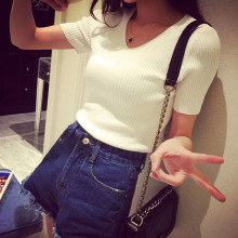 2017春夏新款v领短袖针织衫修身显瘦百搭打底衫毛衣女 韩版 包邮