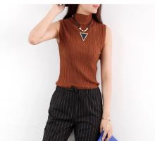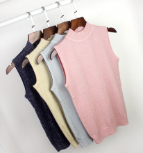 茗茗实拍新款韩版修身显瘦百搭打底针织衫女 高领无袖针织背心
