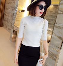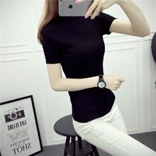 2017春装新款半高领短袖半袖螺纹韩版修身毛衣优质打底衫女潮包邮