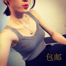 2017春夏百搭新款 茗茗家实拍 韩版V领针织吊带背心 冰丝背心女潮