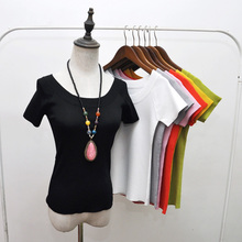 韩版春夏季上衣纯色宽领套头打底衫冰丝针织短袖T恤女修身短款