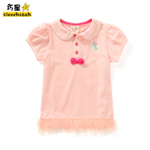 2016夏装新品女童短袖t恤宝宝蝴蝶结儿童半袖棉质打底衫圆点T恤