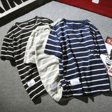 短袖T恤男士韩版圆领条纹潮流夏季T恤 青少年学生百搭修身大码T恤