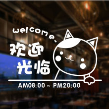 创意营业时间搞笑可爱店铺玻璃门贴饰橱窗装饰贴纸猫咪个性墙贴画