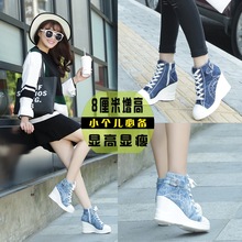 2016春季水洗牛仔高帮帆布鞋女 欧美风涂鸦内增高女鞋学生休闲鞋