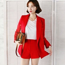 春季新品韩版2017休闲中长款小西装外套+短裤两件套时尚套装女