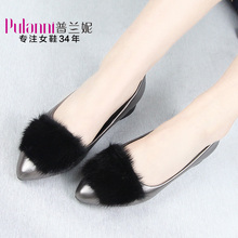 普兰妮春季新款真皮平底鞋女鞋尖头单鞋低跟浅口工作鞋韩版时装鞋