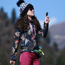 舒米勒户外女式时尚印花软壳抓绒衣修身防泼水透气开衫徒步冲锋衣
