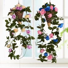 仿真花玫瑰花藤客厅摆设摆件假花藤装饰花藤条绿植绢花干花人造藤