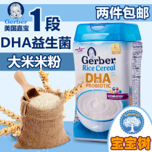 美国Gerber嘉宝1段幼儿大米米粉一段米糊DHA益生菌高铁锌宝宝辅食