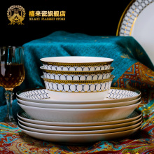 禧来瓷 新款瓷器餐具套装 景德镇骨瓷碗碟盘餐具套装 高档套碗