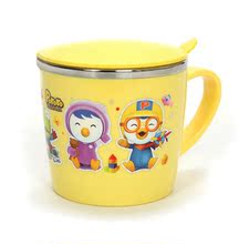 韩国正品pororo啵乐乐儿童水杯带盖把杯 不锈钢隔热杯 儿童杯子