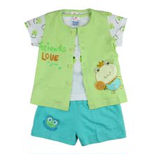 小数点正品 童装 新款夏装 全棉短袖套 青蛙背心三件套 6224201