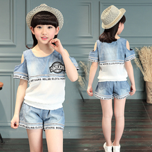 女童夏装休闲套装短袖牛仔三7四3五4六5七6八8九9十10岁女孩衣服