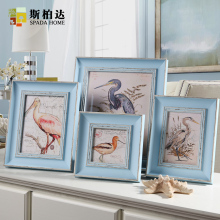 地中海照片墙实木相框墙组合沙发背景美式创意画框餐厅相片墙装饰